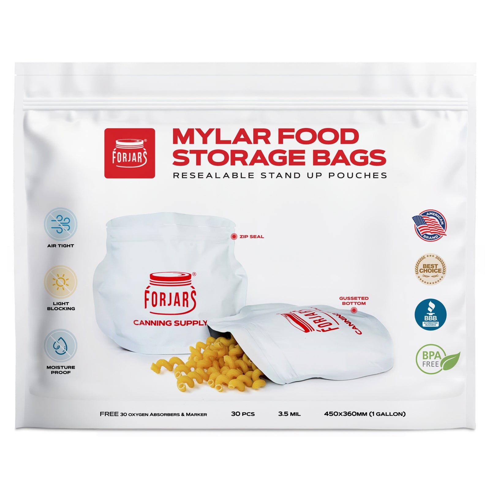 Long-Term Preservation: Whether you're stocking up for emergencies or simply looking to minimize food waste, Mylar bags offer a reliable solution for preserving a wide range of perishable items, including grains, dried fruits, nuts, and more.